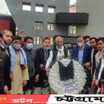 চট্টগ্রাম – ২৪ জানুয়ারী’২২ ইং. চট্টগ্রাম গণহত্যা দিবস উপলক্ষে অপরাজেয় চট্টলার শ্রদ্ধাঞ্জলি অর্পণ,১৯৮৮ সালের ২৪ জানুয়ারী নগরীর লালদিঘি ময়দানে আওয়ামী লীগের সমাবেশে গুলি চালিয়ে ২৪ জনকে হত্যা ও আওয়ামী লীগের সভানেএী বর্তমান প্রধান মন্ত্রী শেখ হাসিনাকে হত্যাচেষ্টা করা হয়, ১৯৮৮ সালের ২৪ জানুয়ারি বিকালে লালদিঘি ময়দানে সমাবেশের আয়োজন করে আওয়ামী লীগ সমাবেশে যাওয়ার পথে বাংলাদেশ ব্যাংক ভবনের সামনে আওয়ামী লীগ সভানেএী শেখ হাসিনার গাড়ি বহর লক্ষ্য করে গুলি করে পুলিশ।শেখ হাসিনা কে রক্ষা করতে গিয়ে পুলিশের গুলিতে মারা যান ২৪ জন নেতাকর্মী,এ উপলক্ষে অপরাজেয় চট্টলা উদ্যােগে আজ সোমবার (২৪ জানুয়ারি) সকাল ১০ টায় চট্টগ্রাম কোর্ট বিল্ডিংস্হ পুরাতন বাংলাদেশ ব্যাংক সম্মুখ চত্বরে ১৯৮৮ সালে চট্টগ্রামে গণহত্যায় নিহত শহীদের প্রতি শ্রদ্ধা নিবেদন করে শহীদ বেদীতে পুষ্পমাল্য অর্পণ করেন। এসময় উপস্হিত ছিলেন চট্টগ্রাম মহানগর আওয়ামী লীগ’র ভারপ্রাপ্ত সভাপতি বীর মুক্তিযোদ্ধা মাহতাব উদ্দিন চৌধুরী, সাধারন সম্পাদক সাবেক সিটি মেয়র আ জ ম নাছির উদ্দীন, চট্টগ্রাম মহানগর স্বেচ্ছাসেবক লীগ নেতা মোঃ হেলাল উদ্দিন হেলাল, চট্টগ্রাম মহানগর ছাত্রলীগের উপ ছাত্রবৃত্তি বিষয়ক সম্পাদক এস এম হুমায়ুন কবির আজাদ, সহসম্পাদক মোঃ ওসমান গণি, চট্টগ্রাম মহানগর ছাত্রলীগ নেতা কামরুল হাসান আরমান,আবদুল ওয়াজেদ চৌধুরী, জাবেদুল হক অর্ণব,ফারুক আজম বাবু,অভিক দাশ,রেজা হাসান কায়েস সহ প্রমূহ।