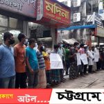 চট্টগ্রামে বহিরাগত সন্ত্রাসী হামলার প্রতিবাদে শ্রমিকদের মানববন্ধন
