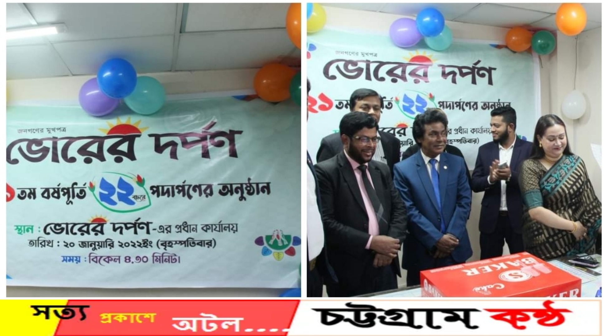 চট্টগ্রাম কণ্ঠ : ডেস্ক ‘জনগনের মুখপাত্র’ শ্লোগানে দৈনিক ভোরের দর্পণহিসেবে পরিচিত দুইযুগ ধরে। বাস্তবরূপে বস্তুনিষ্ঠ,সত্য,ন্যায়,ও নীতিবাচক সারাজাগানো সংবাদ পরিবেশনে বহুল আলোচিত গণমাধ্যম হিসেবে। ভোরের দর্পণ আজ সারাদেশে কথায় নয় কাজেই আরও পড়ুন